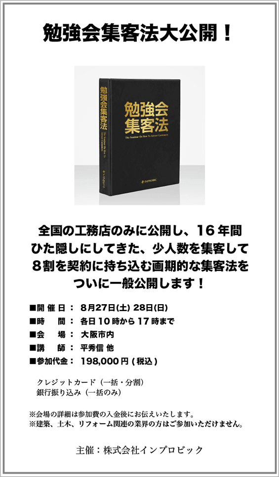 勉強会集客法は、私が全国の工務店のみに公開していた、